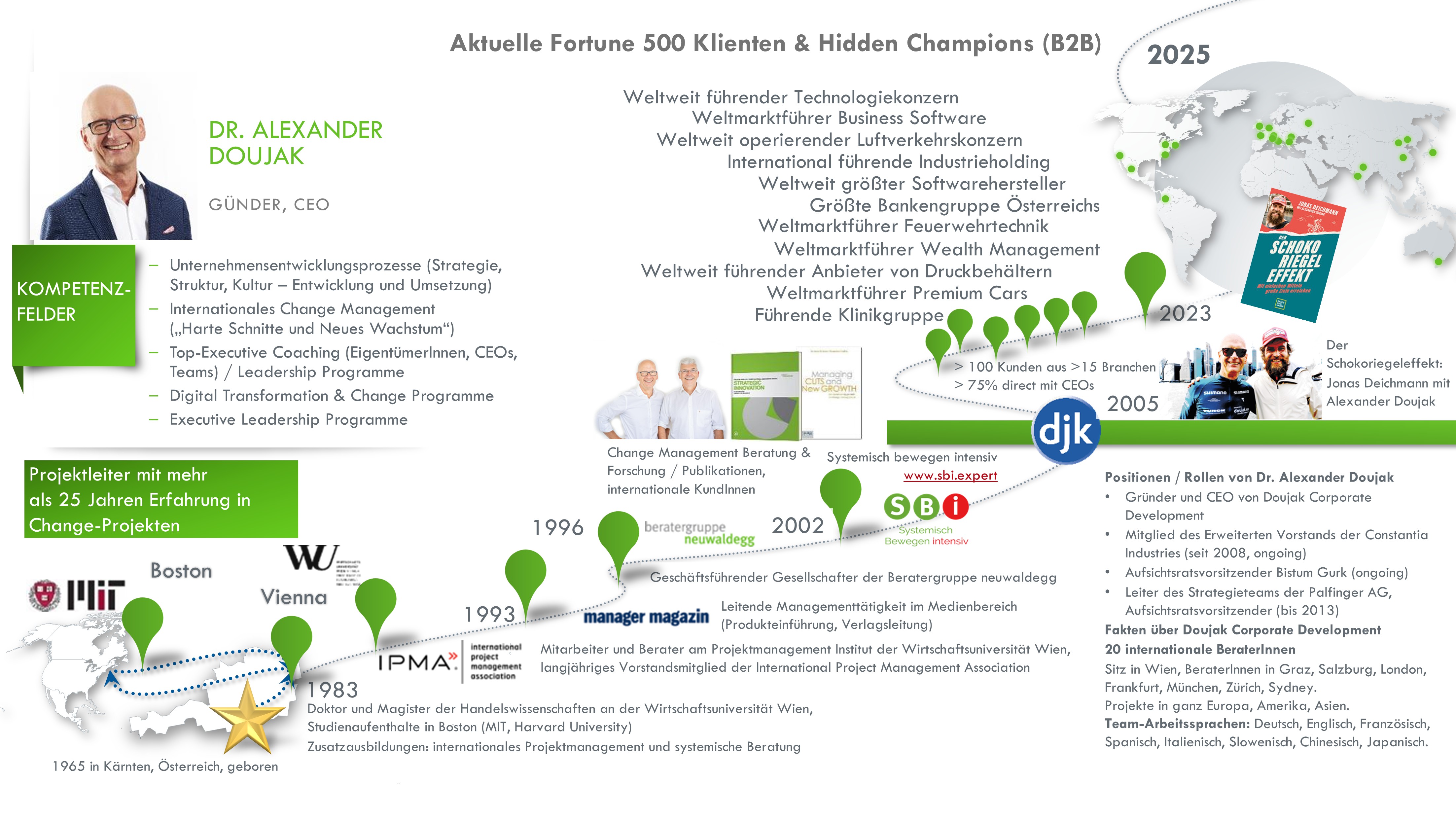 Wir verkörpern zwei Berater-, Manager- und Unternehmergenerationen. In unseren langjährigen Praxis- und Forschungsprojekten arbeiten wir intensiv in den Feldern Strategie-Entwicklung, Strategie-Implementierung, Restrukturierung und Change Management für und mit internationalen Kund*innen und Partner*innen.